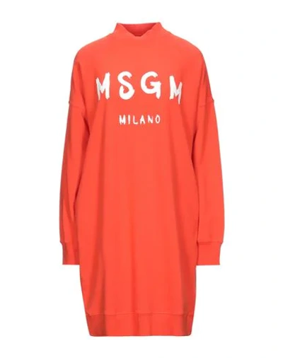 MSGM Short dresses. sweatshirt fleece, logo, solid color, round collar, long sleeves, no pockets, french terry lining. 100% Cotton