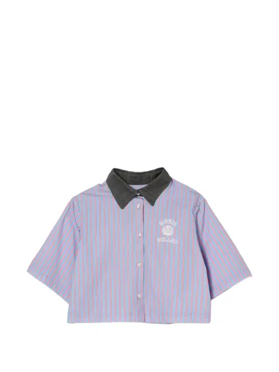 light blue striped pattern collar logo detail short sleeves button-down fastening