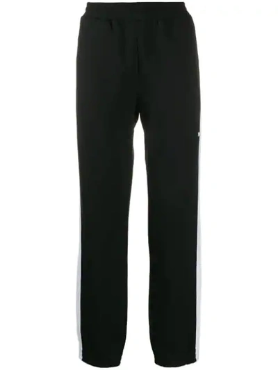 Black cotton striped sweatpants from MSGM featuring an elasticated waistband, a stripe detail to the side, a regular length and a logo at the side.