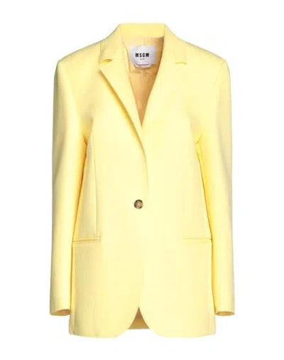 plain weave, no appliqués, solid color, lapel collar, single-breasted , long sleeves, fully lined, 1 button, multipockets, dual back vents, stretch, single-breasted jacket , Color: Yellow , Size: 8
