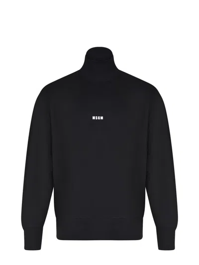 MSGM sweatshirt made of black cotton. High ribbed collar. Long sleeves. White contrast micro 'MSGM' logo print on the front. Ribbed cuffs and hem. 100% Cotton. Made in Italy