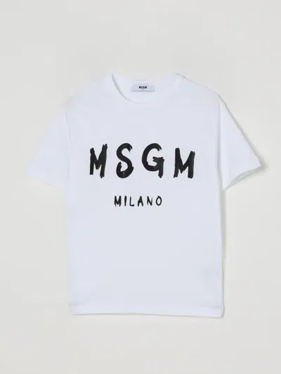 Ribbed crewneck; Short sleeves Contrasting brushed MSGM logo printed at front Straight hem Unisex Regular fit White color 100% Cotton Made in AlbaniaItem in photo corresponds to 6 Years. Mannequin size: 6-7 Years Mannequin measures: Height 1,30 cm, Bust/Breast 62cm, Waist 55cm, Hips 67cm, Shoulder 36cm, Neck 30. 5cm, Arm lenght 37cm, Leg lenght 75cm
