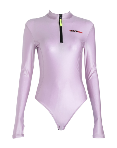 MSGM T-shirts. synthetic jersey, brand logo, solid color, round collar, long sleeves, hook-and-eye closure, zipper closure, no pockets, crotch of body, stretch. 79% Polyamide, 21% Elastane