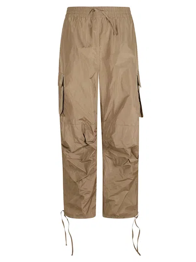 Elastic waistband with drawstring. Drawstring cuffs at hem. Two side pockets. Two cargo pockets. Model is wearing a size38