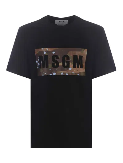 T-shirt msgm crew neck short sleeves camo print and msgm logo lettering on the made in italy