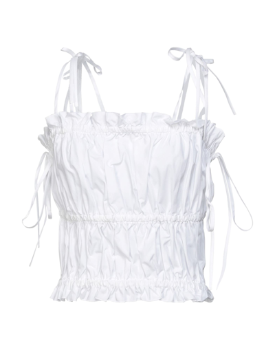 MSGM Tops. plain weave, ruffles, laces, solid color, deep neckline, sleeveless, no pockets. 100% Cotton