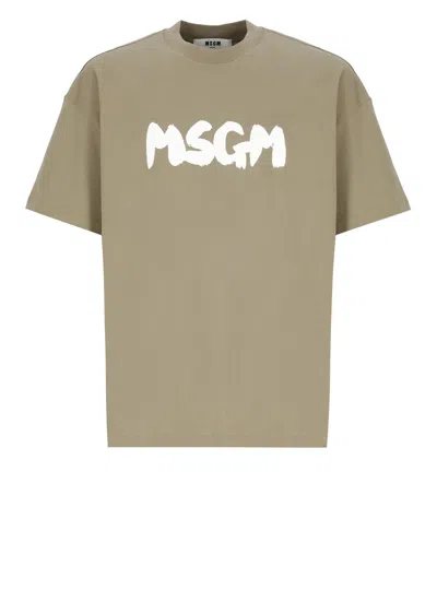 - Green MSGM cotton t-shirt for man - Round neckline - Short sleeves - Front contrasting color MSGM print Composition: 100% Cotton