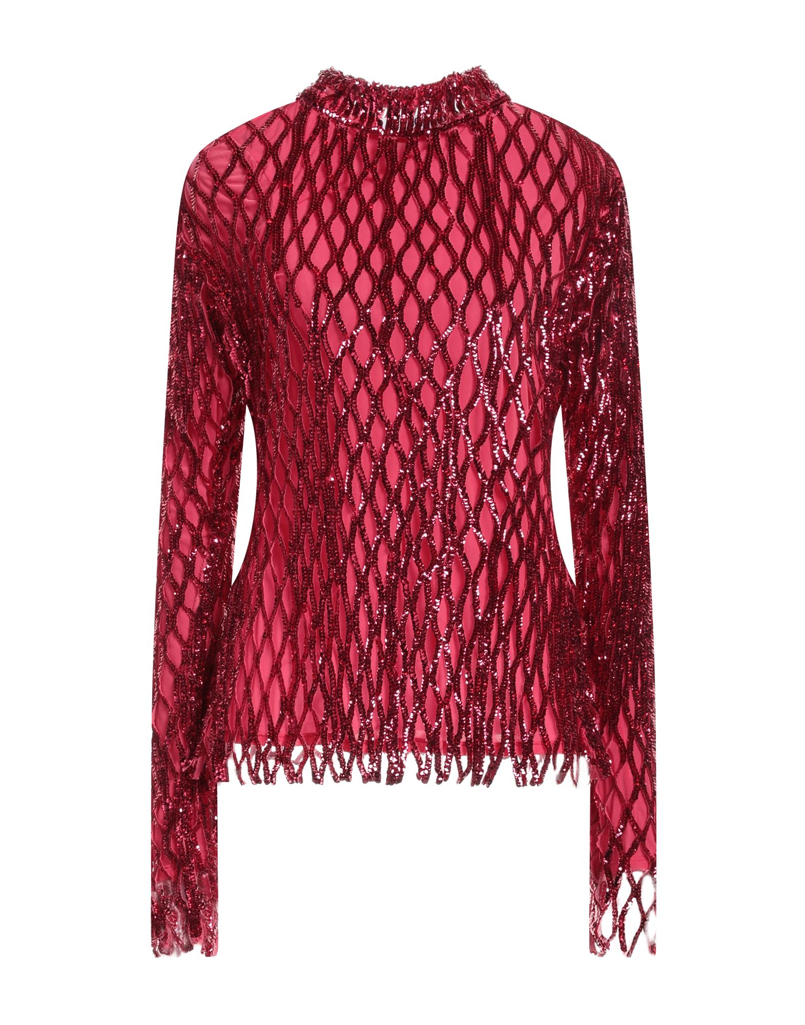 MSGM T-shirts. jersey, sequins, solid colour with appliqués, turtleneck, long sleeves, no pockets, stretch. 50% PVC - Polyvinyl chloride, 45% Polyamide, 5% Elastane
