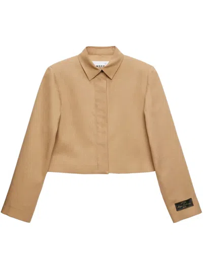 MSGM Cropped Beige Jacket With Classic Collar In Neutral