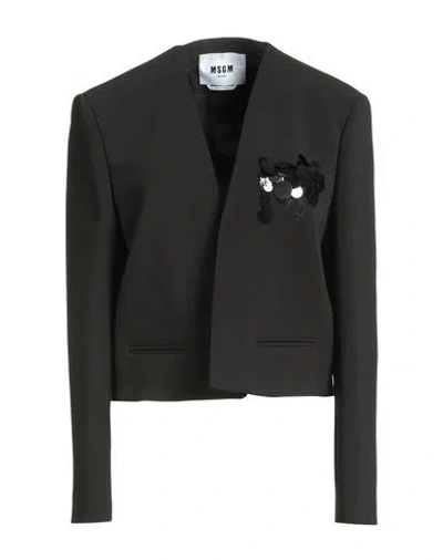 MSGM Woman Jacket Black Size 10 Polyester, Elastane, Pvc - Polyvinyl Chloride, Polyamide