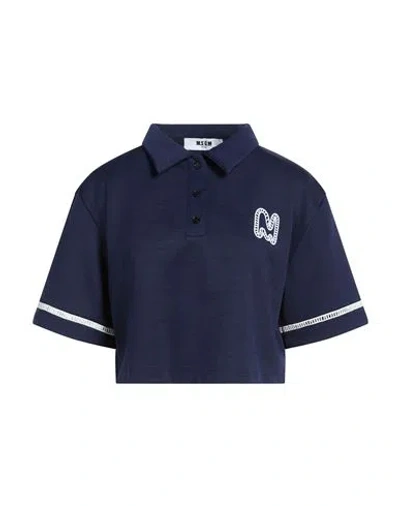 MSGM Woman Polo Shirt Midnight Blue Size L Polyester, Cotton