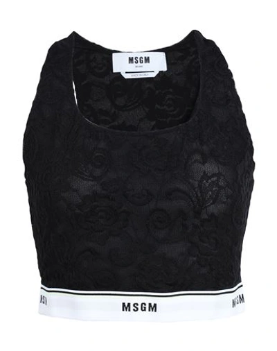 MSGM Woman Top Black Size 2 Polyamide, Elastane