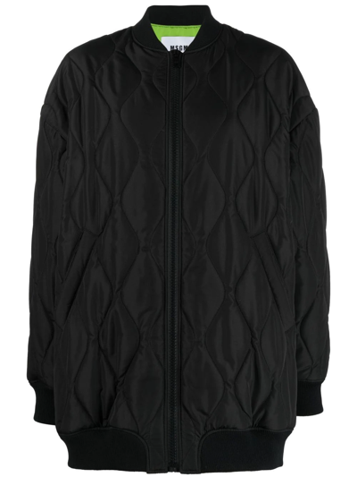 MSGM oversized jacket in matte technical fabric with wavy quilting and lightweight synthetic padding. Bomber-inspired design with rib-knit finishes on collar, cuffs and hem. Zip closure, welt pockets, contrast lining. The model is 177 cm tall and wears a size IT 38. Composition: 100%PL, 100%PL