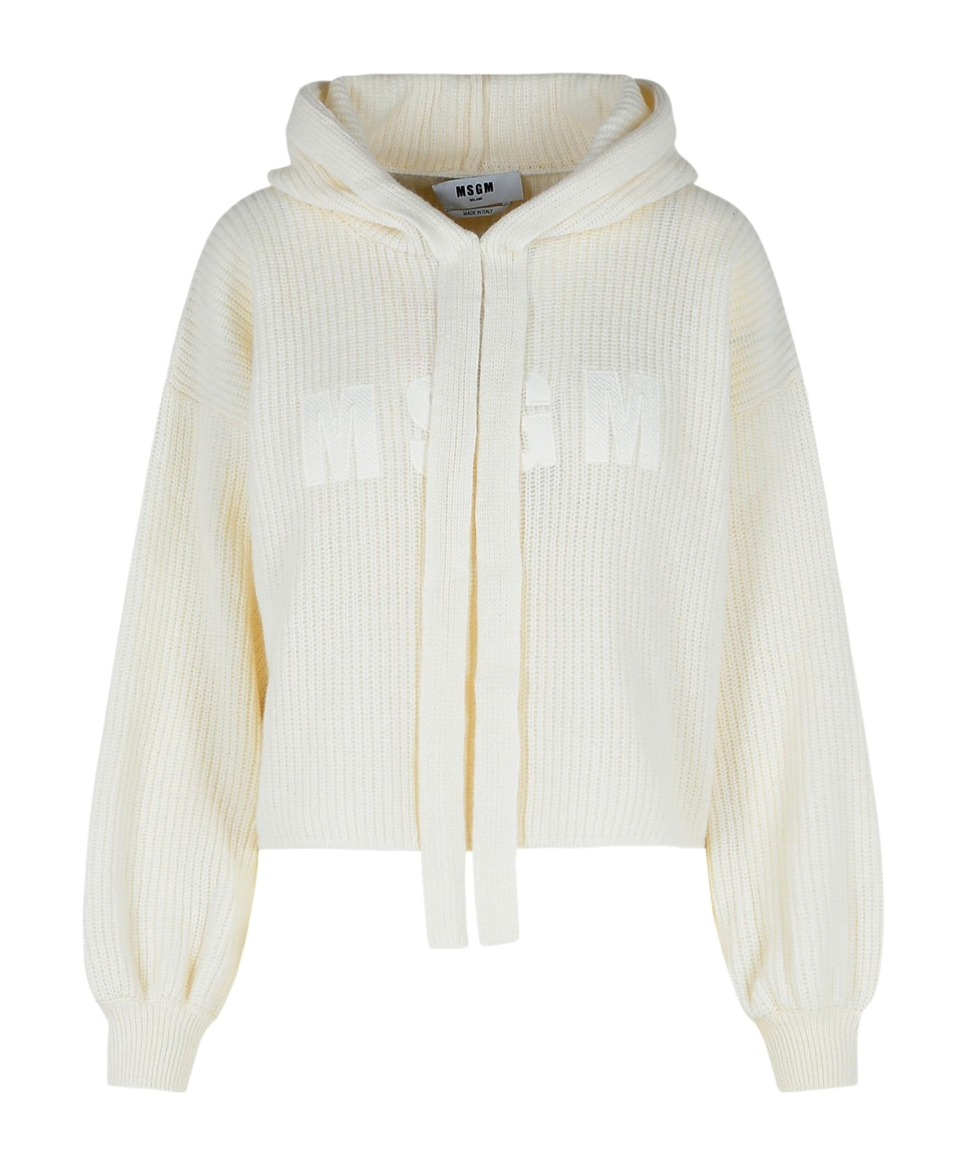MSGM Wool Blend Sweater Hooded Design In Beige