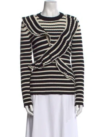MSGM Wool Sweater Black & White Striped Ruffle Embellishment Long Sleeve with Crew Neck Designer Fit: Sweaters by MSGM typically fit true to size. | MSGM Wool Striped Sweater in Black/White, Women's M
