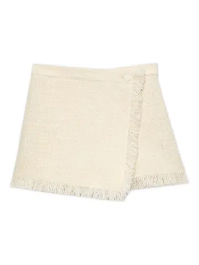 MSGM Wrap Design Shorts With Button Accent And Fringe In Neutral