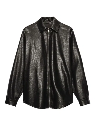 black textured effect point collar long sleeves zip fastening