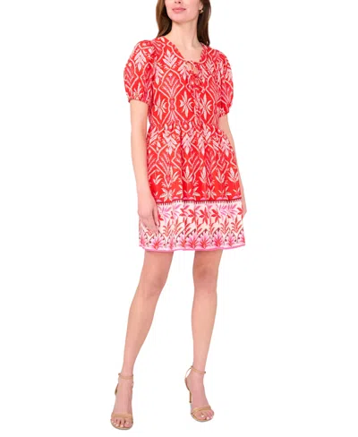 MSK Women's Printed Tie-neck Short-sleeve Dress In Red