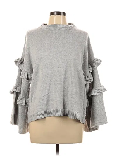 Mud Pie Pullover Sweater, Size: Large. Item Details: Gray, Ruffles Neckline, 3/4 Sleeve, Women's Tops, Acrylic/Polyester/Nylon