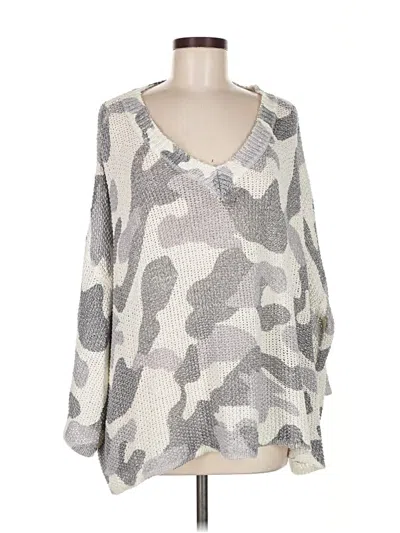 Mud Pie Pullover Sweater, Size: Medium. Item Details: Silver, Camo Pattern, Scoop Neck, Long Sleeve, Women's Tops, Acrylic/Nylon