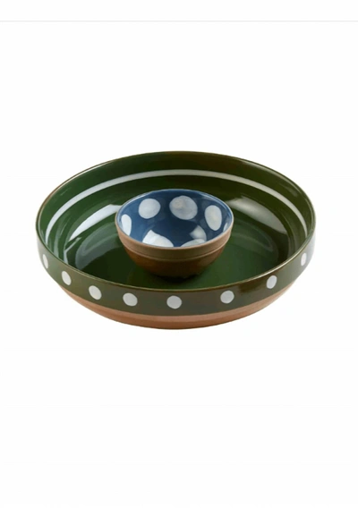 MUDPIE Glazed Stoneware Chip And Dip Set In Green