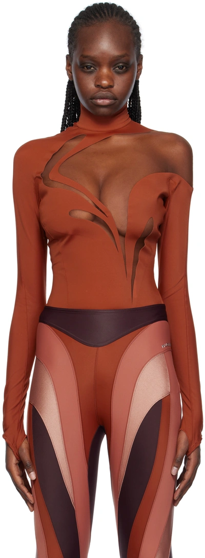 MUGLER Tan Swirly Bodysuit In B71n2 Sienna/nude 02
