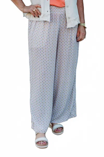 MULTIPLES Elastic Shirred Pant Wide Leg Crop In Multi In Blue