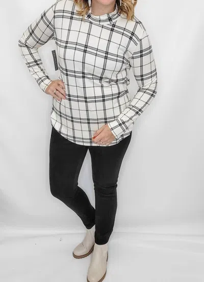MULTIPLES Plaid Layering Mock Neck Top In Black & Cream In Multi
