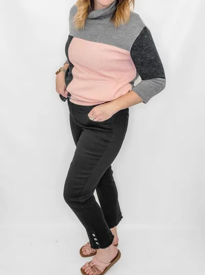 MULTIPLES Pull-on Button Fringe Hem Jean In Black In Multi