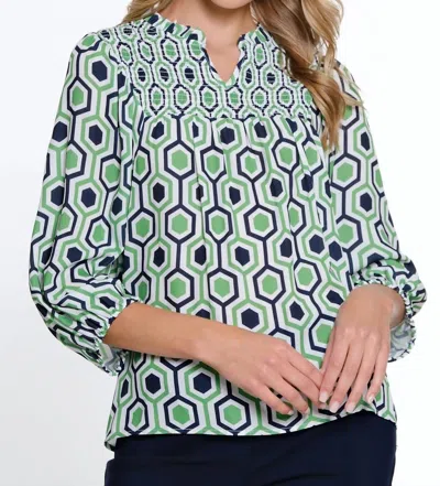 MULTIPLES Ruffle Neck Print Top In Multi In Green
