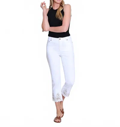 MULTIPLES Zip Front Fringe Hem Crop Jean With Embroidery In White