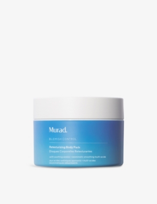 RETEXTURIZING BODY PADS 45CT. Benefits: Smooths skin and clears acne in 1 use. Improves KP and ingrown hairs. Immediately soothes aggravated skin and improves skin tone. Pairs perfectly with Murad's Clarifying Body Spray for your clearest, smoothest skin. Key Ingredients: Calming azelaic acid: rebalances aggravated skin. 2% (max-strength) salicylic acid: clears and treats breakouts. Glycolic acid: exfoliates to improve rough, bumpy skin, while clearing dead skin cells to enhance product penetration. Patented amino acid technology: targets irritation-causing bacteria. Research Results: Smooths skin and clears acne in 1 use*. Improves KP and ingrown hairs. Immediately soothes aggravated skin and improves skin tone. *4-week clinical study with 36 participants.
