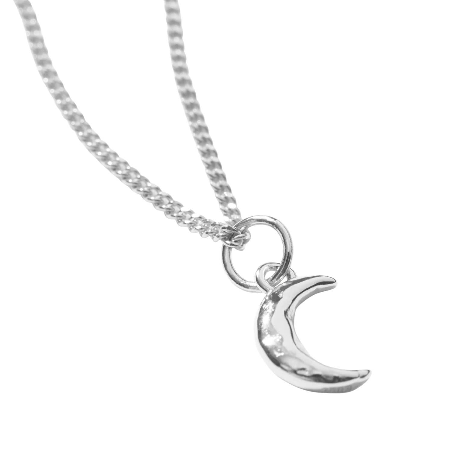 A timeless symbol of empowerment, our tiny moon necklace adds a touch of inner strength to your everyday. Crafted in sterling silver. This delicately textured moon pendant rests on a sleek curb chain, perfect for layering or wearing solo as a meaningful statement. A thoughtful gift for the jewellery lover in your life, or the missing piece in your everyday stack. 925 sterling silver & rhodium plate To keep your jewellery in peak condition, please polish with a micro-fibre cloth