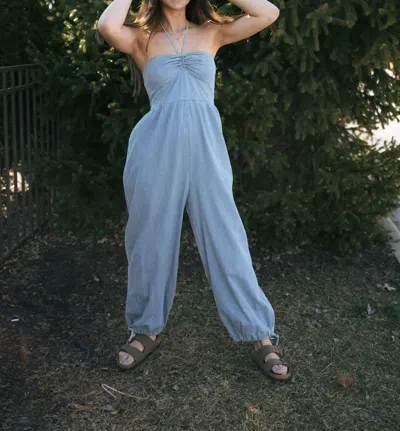Halter Jumpsuit In Chambray In Blue