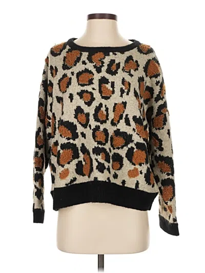 Mustard Seed Pullover Sweater, Size: Small. Item Details: Brown, Animal Print Pattern, Crew Neck, Long Sleeve, Women's Tops, Polyester/Cotton