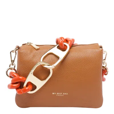 My Best Bag Firenze Brown Logo Reflex Shoulder Bag, Zip Closure, 3 Sections, Adaptable And Removable Strap, Frontal Tone On Tone Logo, 16x22x6 cm