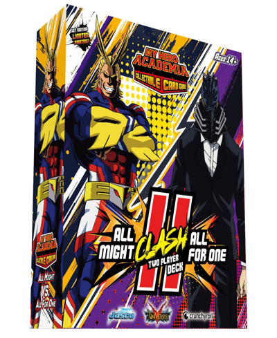 My Hero Academia- 2-player clash deck - all might all for one face off in an epic showdown with this 104-card two-player set for the My Hero Academia collectible card game.