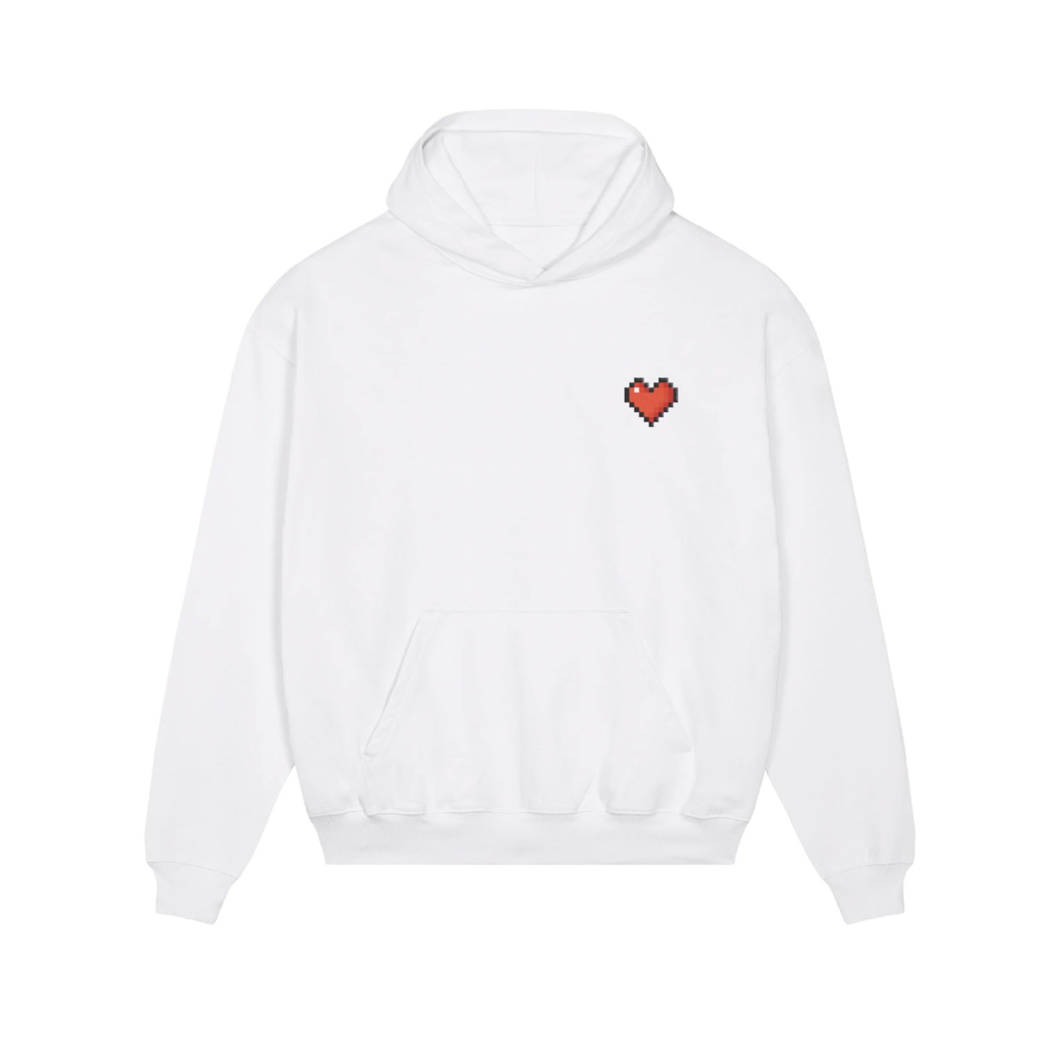 Introducing our White Cotton Oversized Hoodie, where comfort meets love in every stitch. Crafted from premium cotton, this hoodie offers a cozy and breathable feel that's perfect for all-day wear. But what truly steals the show is the heart logo design adorning both the front and the back, spreading love wherever you go. With dropped shoulders for a relaxed fit and a convenient pouch pocket, this hoodie combines style and functionality effortlessly. Whether you're lounging at home or heading out with friends, our White Cotton Oversized Hoodie is the perfect choice for those who want to wear their heart on their sleeve—literally. Composition: 100% cotton, no color degrading while washing, long lasting print Wash and care: Due to the nature of the 100% cotton french terry fabric, please ensure that the wash instructions are followed: Cold wash inside out before wearing; Iron inside out only; Do not tumble dry; Do not bleach