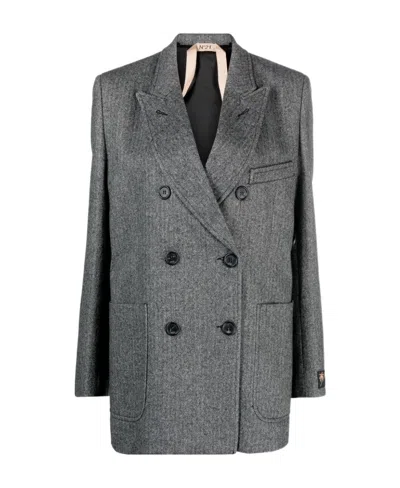 There are logo patches on the sleeves, lapels, double-breasted buttons, chest pockets, two front pockets, long sleeves, button cuffs, straight hem.