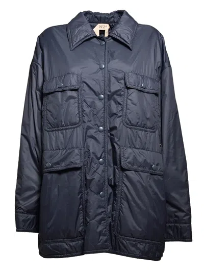 N°21 Oversized Long Technical Nylon Jacket In Blue