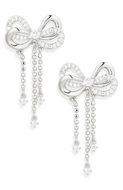 NADRI Chain Drop Bow Earrings In Silver