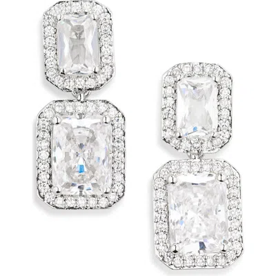 NADRI Modern Love Pavé Halo Drop Earrings In Silver