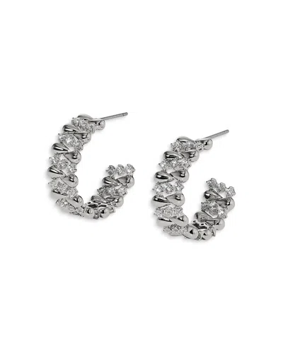 Nadri Pisa Pattern C Hoop Earrings, 0.9" diameter.Color:Silver.Earrings.