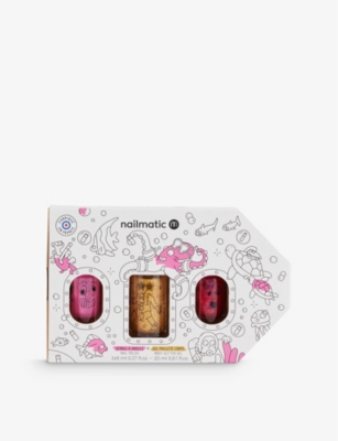 nailmatic makeup gift setIncludes: pink glitter nail polish 'Sissi, the siren', pink glitter nail polish 'Pinky, the rock star', golden glitter body gelMade in FranceCruelty-free and veganSuitable for ages 3+For hygiene reasons, we are unable to exchange or refund this product, unless faulty.