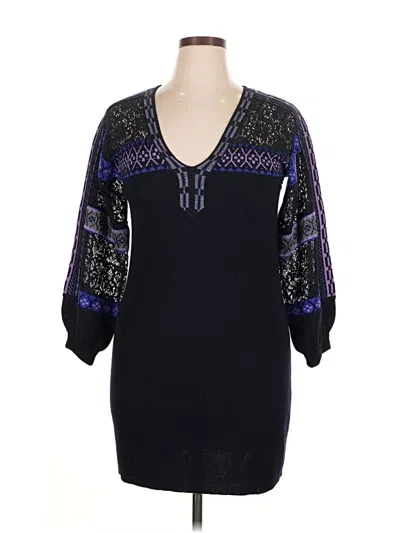 Nanette Lepore Cocktail Dress, Size: Large. Item Details: Blue, Sweater Dress, V Neck, Short Length, 3/4 Sleeve, Velvet, Women's Dresses, Wool/Other
