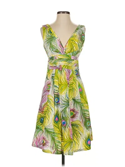 Nanette Lepore Cocktail Dress, Size: 2. Item Details: Yellow, Tropical Pattern, Wrap, V-Neck, Knee Length, Sleeveless, Print, Women's Dresses, 100% Cotton