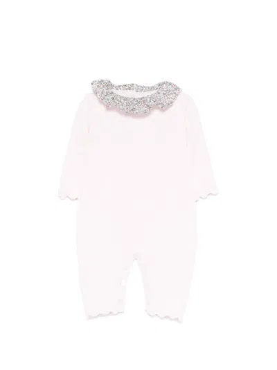pastel pink ruffled collar long sleeves scalloped trim button fastening