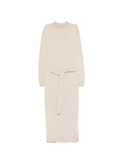 cream self-tie belt turtleneck long sleeves knitted construction slit detail