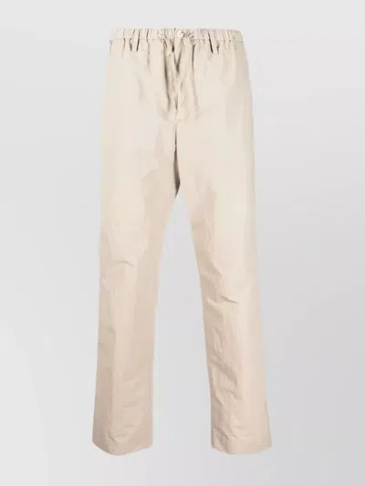 Relaxed Fit Trousers With Elastic Waistband And Textured Fabric In Neutrals