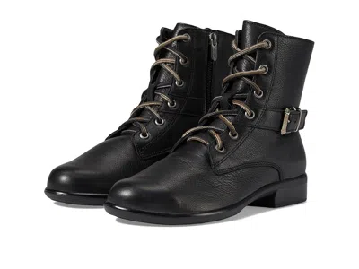 Naot Alize - Women's Shoes : Soft Black Leather : ; Each Naot shoe is handmade with the finest and highest quality raw materials! The Naot Alize Boots come with a durable strobel sewn construction that offers a comfy fit. ; Leather upper and lining. ; Lace-up closure. ; Zippered side closure for easy on and off. ; Durable and shock-resistant construction. ; Strap on the side with buckle closure for a secure fit. ; Shoe features a hand-sewn strobel construction making it strong and extremely flexible. ; Polyurethane midsole. ; Removable cork and latex footbed covered in microfiber and leather. ; Abrasive sole with an anti-slip feature for easy walking and traction. ; Round toe design. ; Polyurethane outsole. ; Imported. Measurements: ; Heel Height: 1 in ; Weight: 12 oz ; Shaft: 6 in ; Product measurements were taken using size EU 37 (US Women's 6), width M. Please note that measurements may vary by size. | Naot Alize Women's Shoes Soft Black Leather : EU 38 (US Women's 7) M